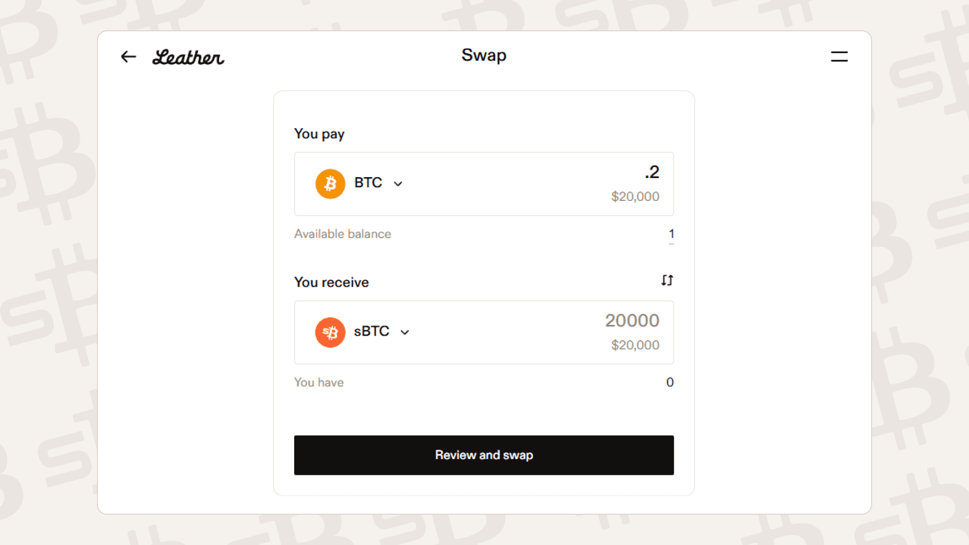 Additionally, there is no additional service fee needed to enroll your sBTC for rewards. While a typical STX network transaction fee is still required, Leather is sponsoring these swap transactions (and swap transactions from sBTC to any other Stacks fungible token) for users who don’t have the amount of STX needed in their wallet.
