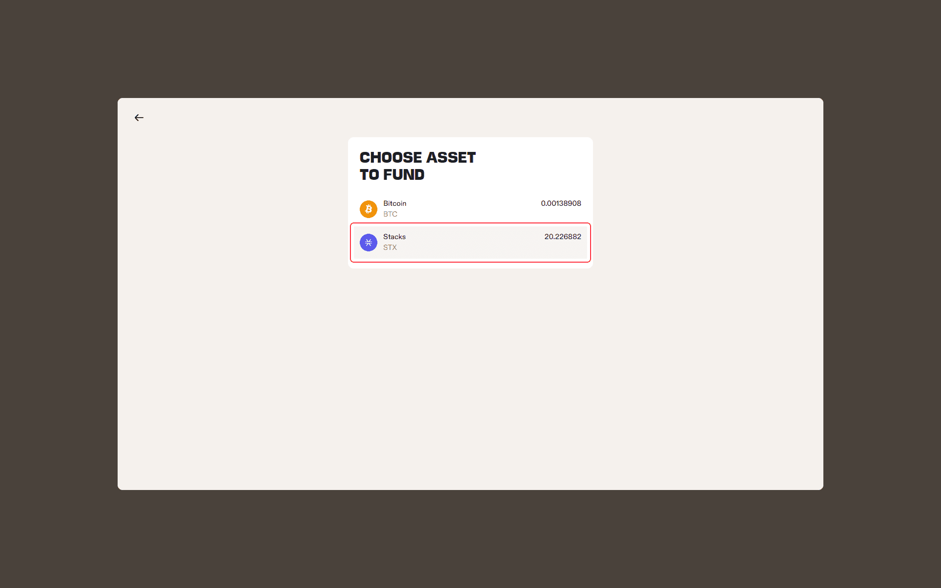 Select Stacks: Choose Stacks (STX) when prompted.