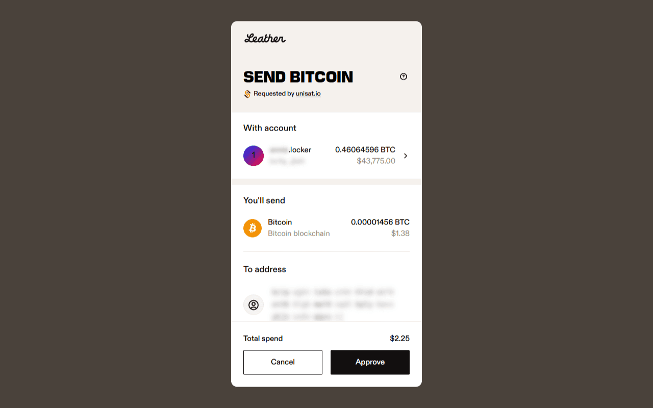 For certain functions like minting BRC-20s, you'll be prompted by apps to send your bitcoin to complete the transaction. Generally, these are the steps to authorize this type of transaction: